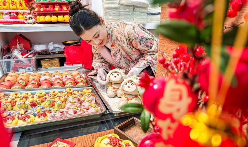 “这花馍年味足、寓意好,过年摆上桌特别提气氛,是春节妆点餐桌的佳品。”正在选购花馍的市民朱女士如是说。近年来,随着国潮兴起,花馍日益受到欢迎。郭钰介绍,目前订单已排至正月,日均产量高峰可达上万单,销售额较平日增长一到三倍。郭钰则说:“我们把祝福揉进面粉里,让花馍不只是食物,更是有温度的手作艺术。”