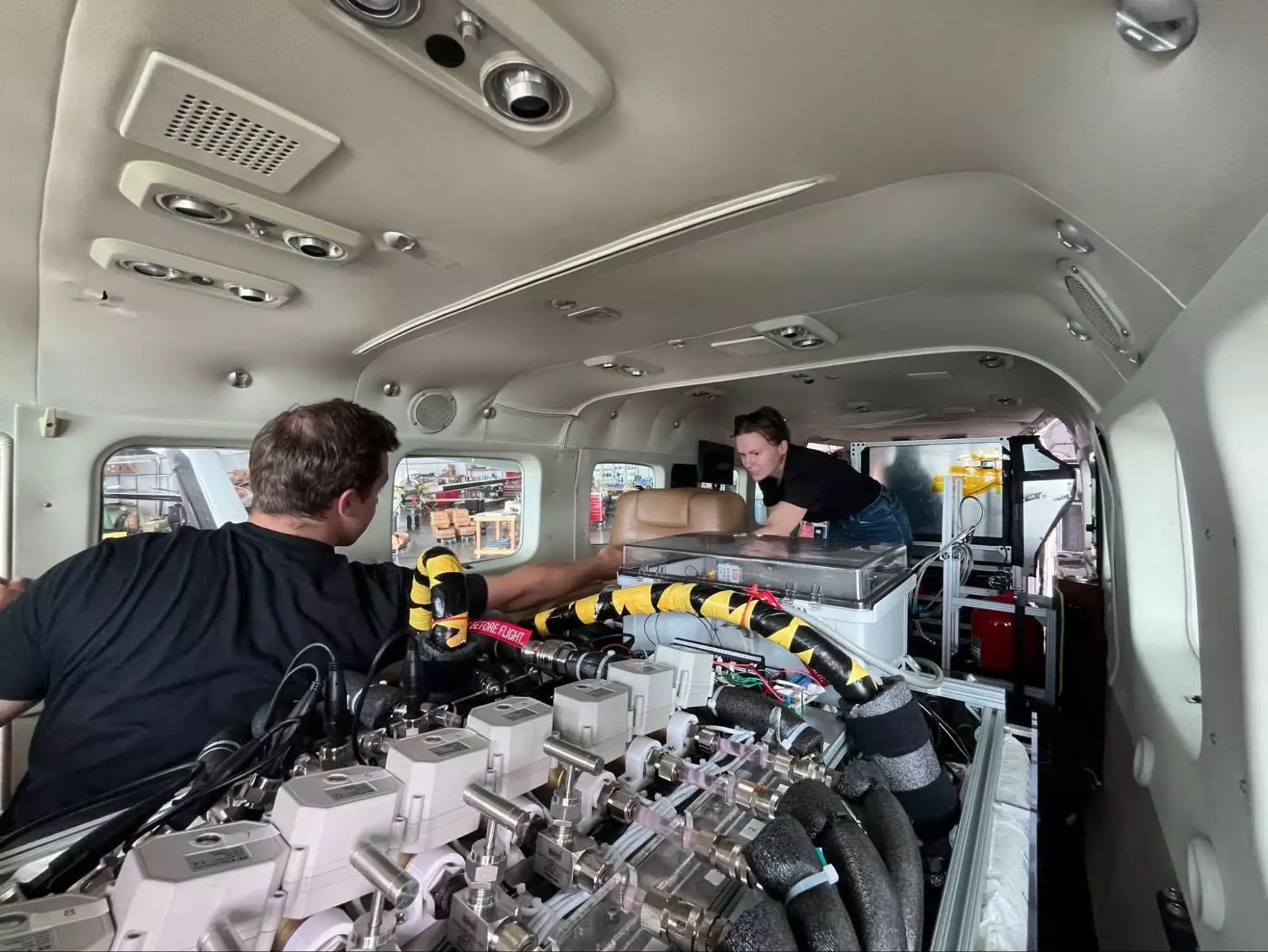 在这次试验中,研究人员在飞行高度约 5 公里(约 3.1 英里)的塞斯纳飞机上安装了一套由电池、电源模块、激光器及冷却系统组成的发射装置,通过激光束向地面太阳能电池板阵列传输能量。 机载电池模拟未来太空太阳能卫星上的光伏组件,激光模块将电能转换为光束,而光学组件则持续跟踪地面接收阵列位置,从而在飞机移动过程中保持激光精确对准。