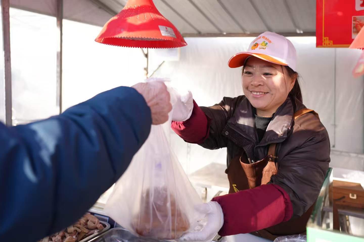 炊烟袅袅,煎炸烹煮的声响与摊主的热情吆喝交织,如今,这座承载厚重历史底蕴的市集以全新姿态亮相,勾勒出一幅热气腾腾的民生画卷。千种民生好物集中亮相,鲜蔬瓜果青翠饱满,乡土特产地道醇香,往来市民穿梭挑选、暖意融融。这座古驿市集既延续了老沈阳的烟火温情,更集纳了东北各地的名优特产品,解锁了浑南新春文旅消费新场景。